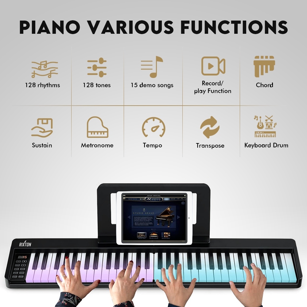 Rixton Foldable 61 Keys Keyboard Folding Piano Keyboard Musik With Full Size Semi Weighted Keys Portable Elektrik Lipat