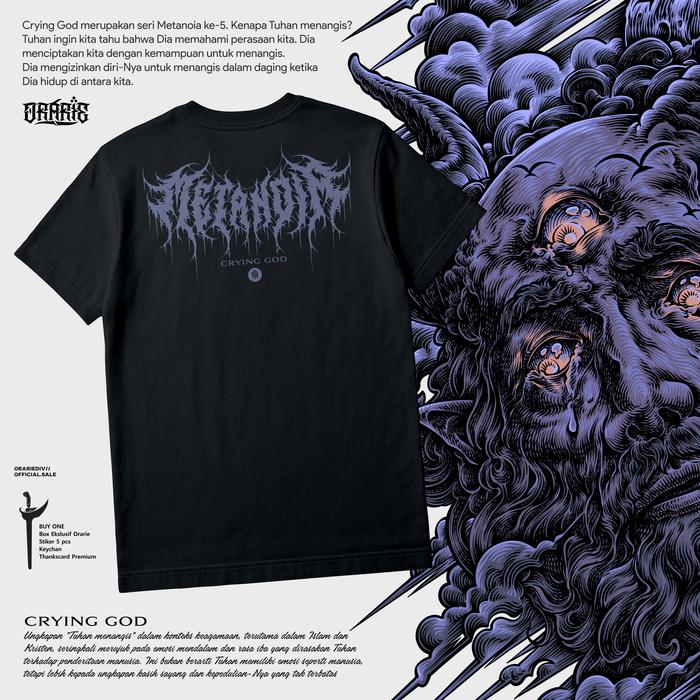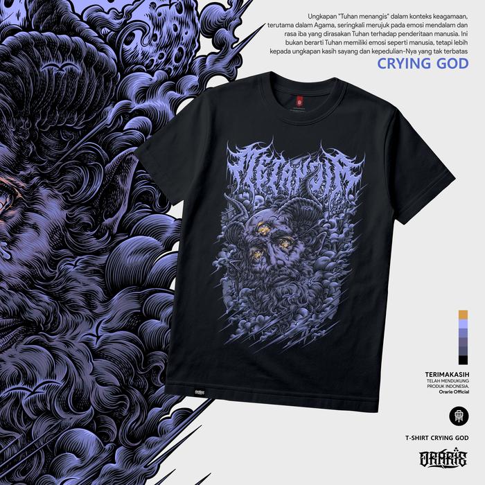 Orarie Crying God T-Shirt Reguler Fit 100 PERSEN Cotton Combed 24S 185 Gsm Kaos Pria Hitam Sablon Discharge Awet Nyaman Tampil