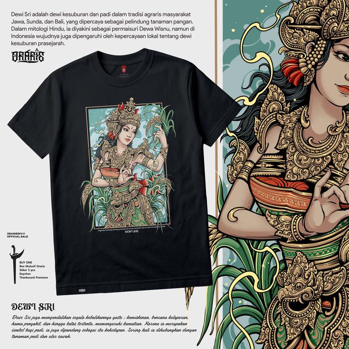 Orarie T-Shirt Dewi Sri Hitam Kaos Atasan Pria Wanita Lengan Pendek Cotton Combed 24S Reaktif 185 Gsm Sablon Plastisol B