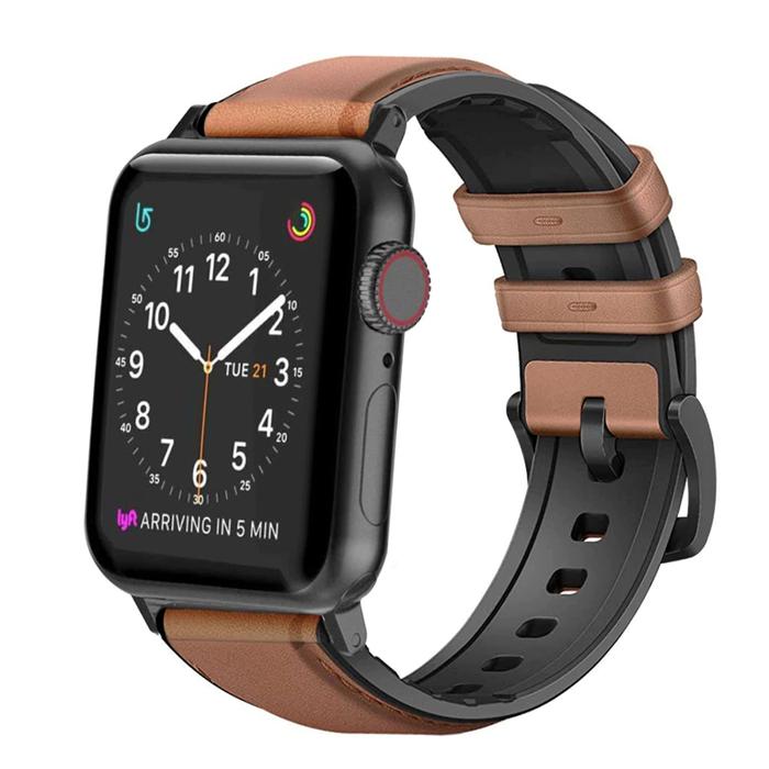 Silicone Silikon Leather Strap Apple Watch 1 2 3 4 5 6 7 8 Se Ultra - 38 40 41 Mm, Black-Black