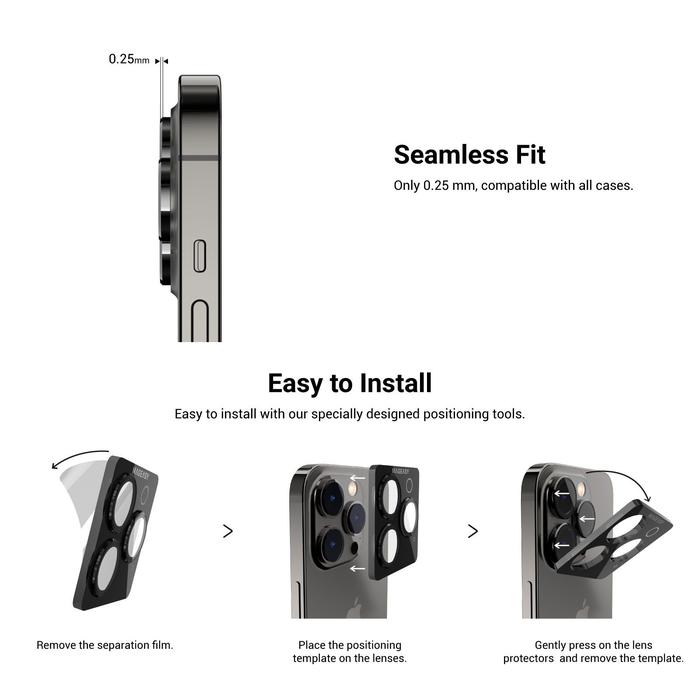 Tempered Glass Kamera For Iphone 14 Pro Max Plus Mageasy Lenzguard Camera - Black, 14/14 Plus
