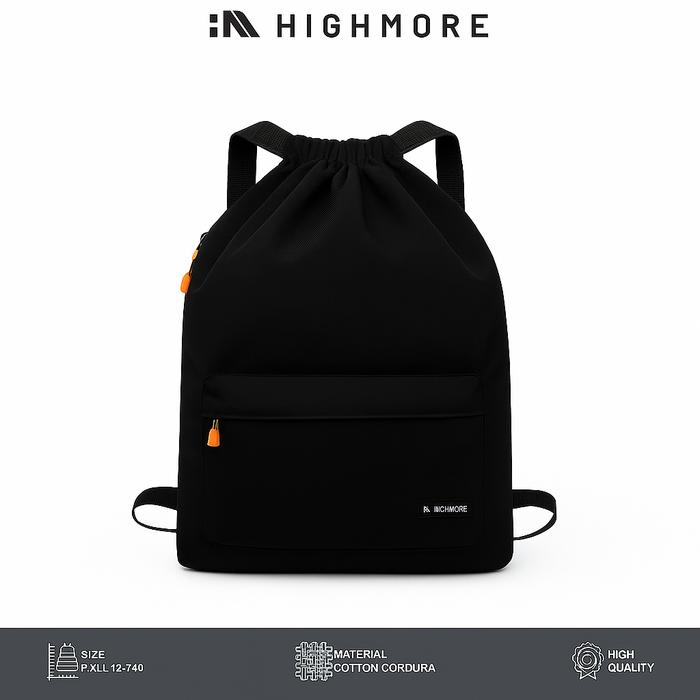 Highmore Tas Ransel Serut Sekolah Backpack Pria Wanita Serbaguna Waterproof Hitam Elegan - Serut Highmore