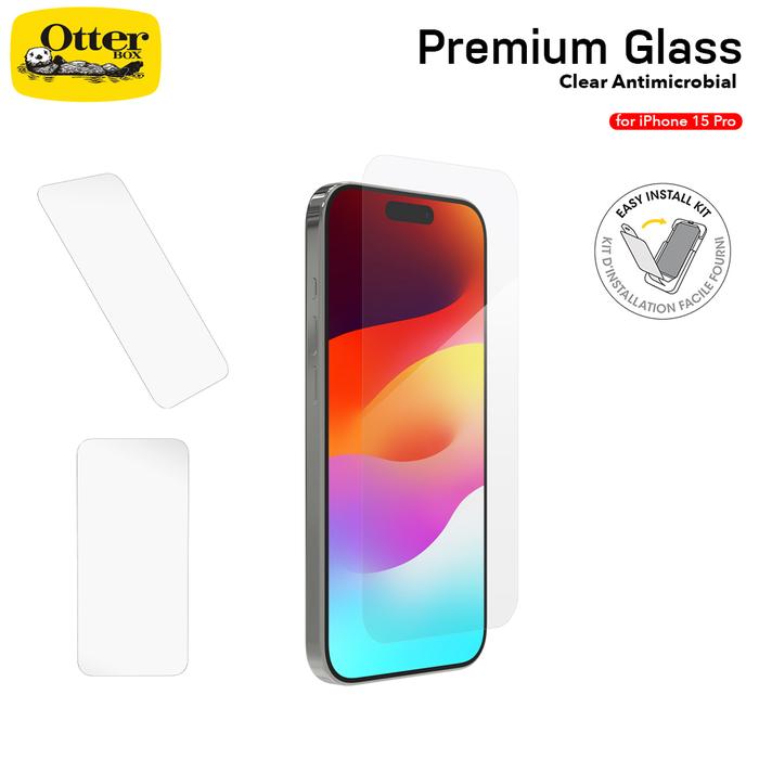 Otterbox Iphone 15 Pro Tempered Glass Premium Antimicrobial Clear