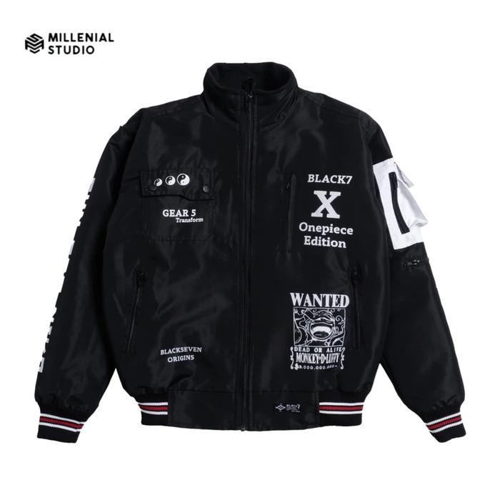 BOMBER JACKET ONE PIECE HITAM SUN GOD NIKA BLACKSEVEN JAKET WATERPROOF ANIME BIKER PRIA WANITA