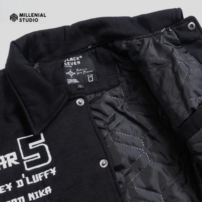 VARSITY JACKET BLACKSEVEN JAKET ONE PIECE LUFFY GEAR 5 HITAM SUN GOD NIKA JAKET BASEBALL BORDIR