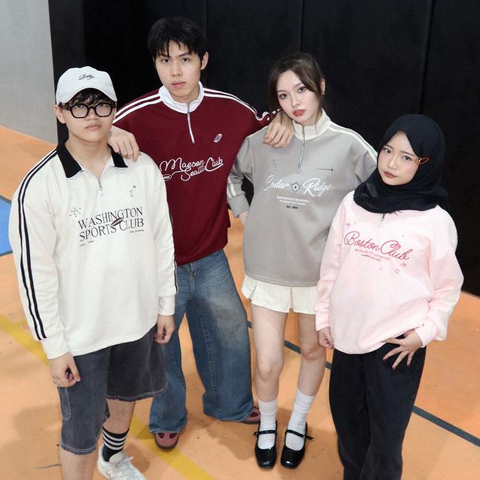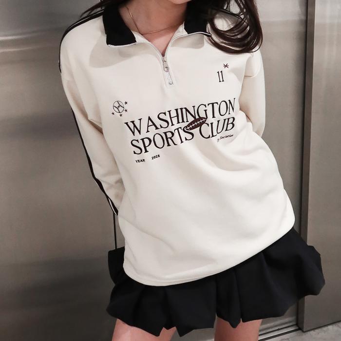 MAESON States Half Zip Turtleneck Graphic Embroidered Sweatshirt