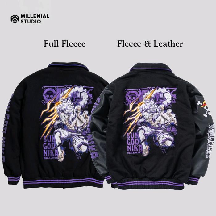 LIMITED VARSITY JACKET ONE PIECE LUFFY BLACK PURPLE SUN GOD NIKA JAKET BASEBALL BORDIR ORIGINAL