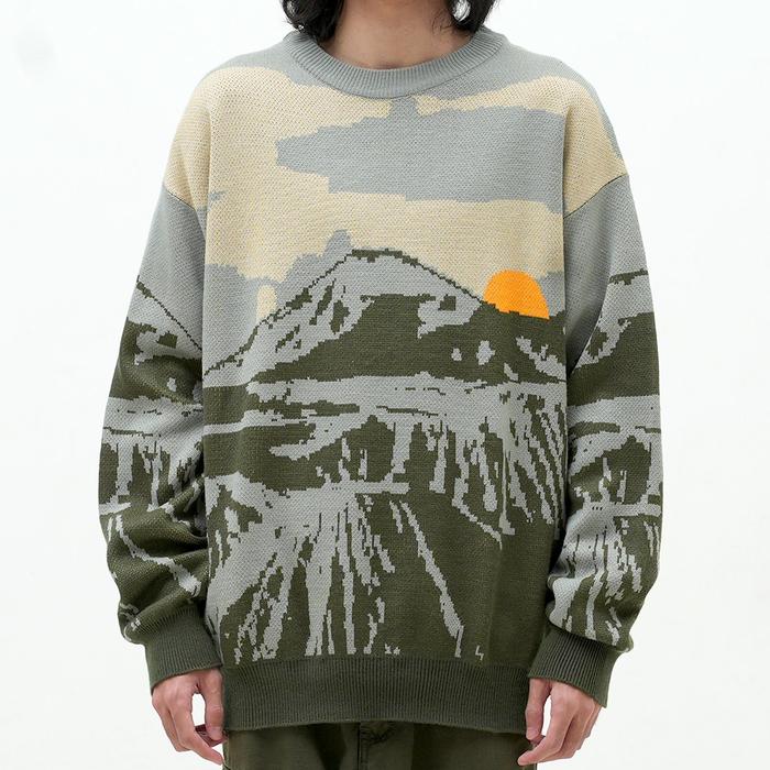 Roughneck RS002 Grey Mount Bromo Knitwear Crewneck Panjang Pria Sweater