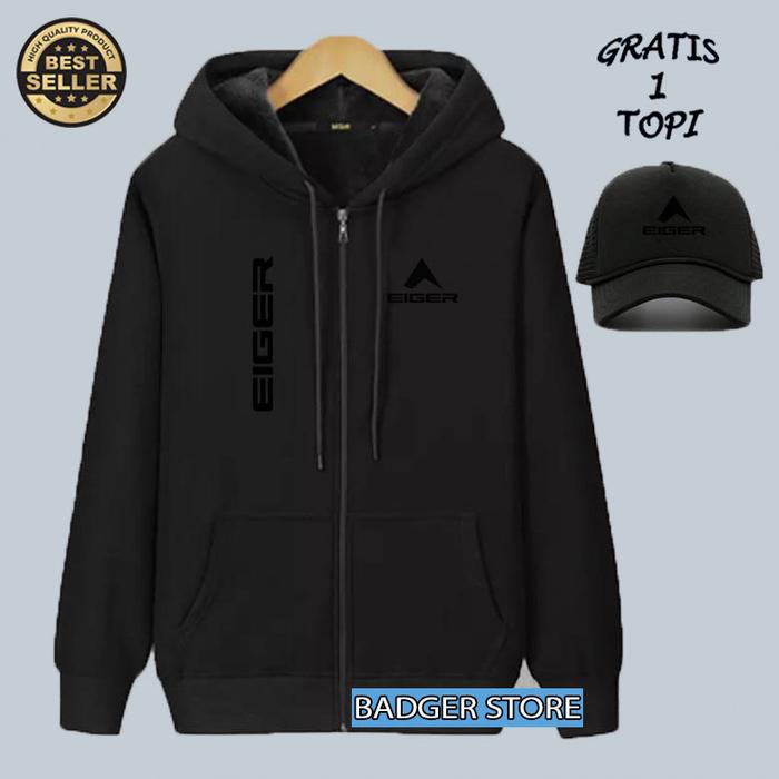 BELI JAKET GRATIS TOPI...!!! Jaket Resleting 1205 Kirka Text Hitam Premium Jaket Sweater Hoodie Pria