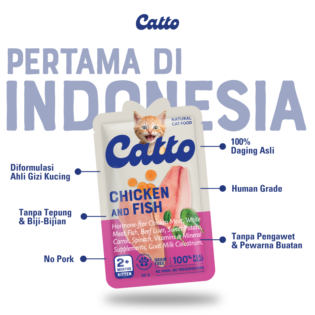 Catto Makanan Anak Kucing Basah Cat Food - Box Chicken and Fish Kitten 50gr x 20pcs | Wet Cat Food