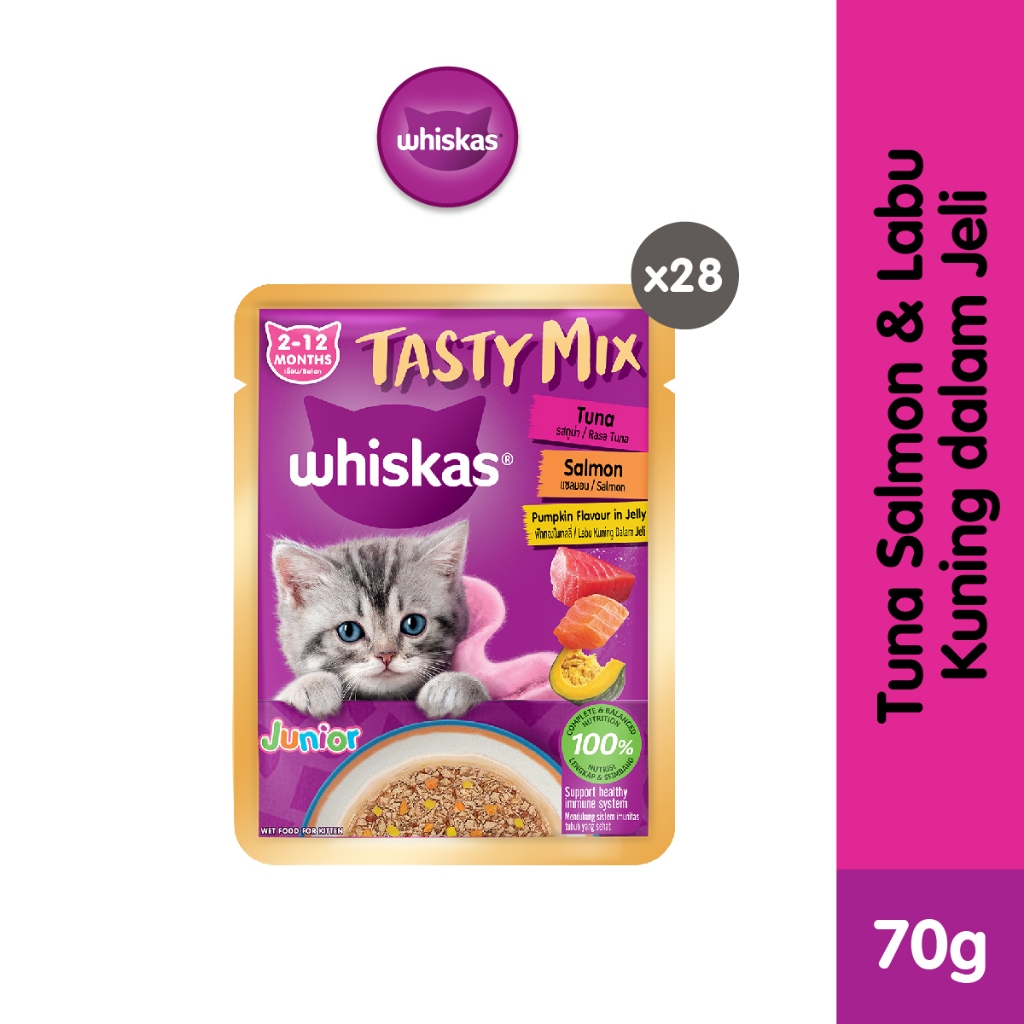 WHISKAS Tasty Mix Jelly Junior Makanan Basah Anak Kucing Pilih Rasa 70g (28-Pack)