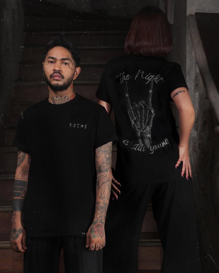 Original 100 PERSEN Rucas "Rockstar Skeleton" Hand Tee Black - S