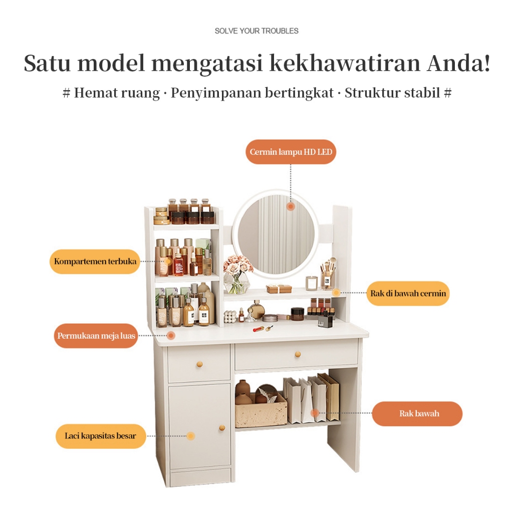 Meja Rias Kursi Pita/ Meja Rias Lampu LED / Meja Rias Dengan Cermin / Meja Rias Minimalis/ Meja Penyimpanan / Meja Kosmetik / Meja Kamar Tidur
