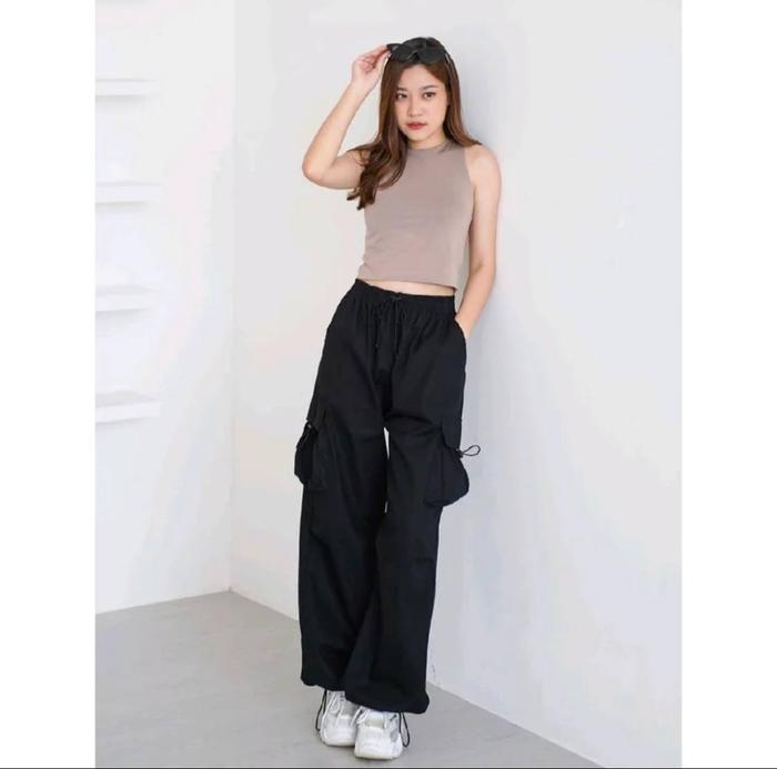 Celana Cargo Serut Wanita Highwaist Vol. 2 Panjang Kaki Cantik Standar Kain Tebal Kulot Karet American Drill Grade A Ade