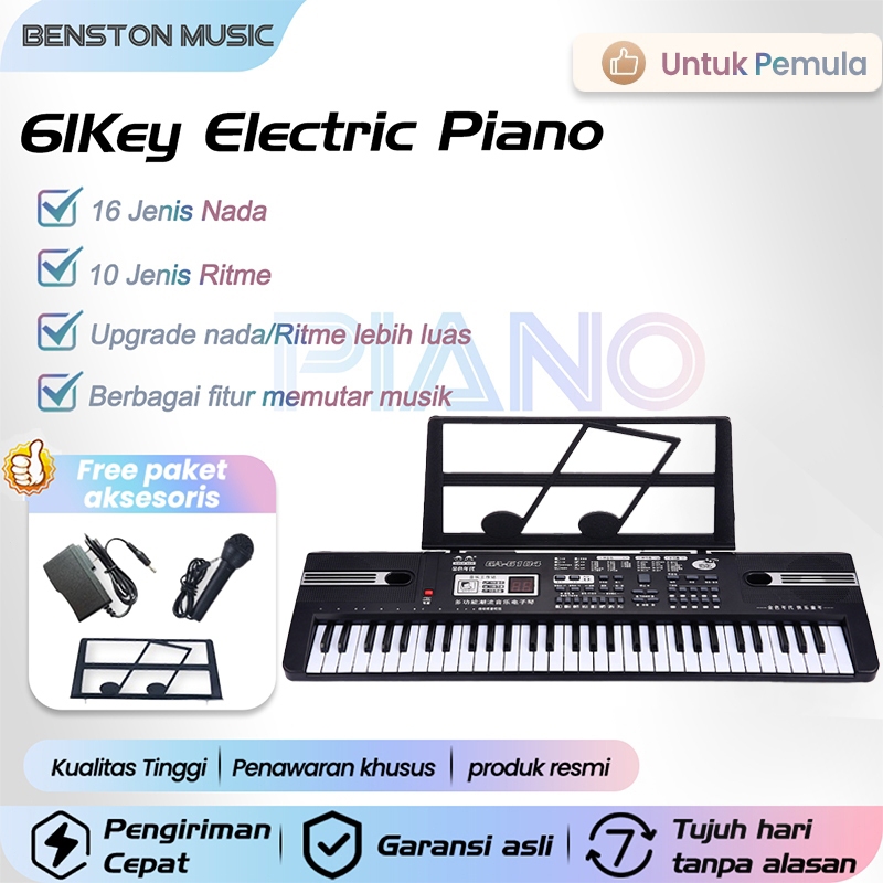 Benston Music- Organ Elektronik Multifungsi Anak Laki-Laki Dan Perempuan Pemula 61 Kunci Piano Rumah Bayi 3-6-12 Tahun M