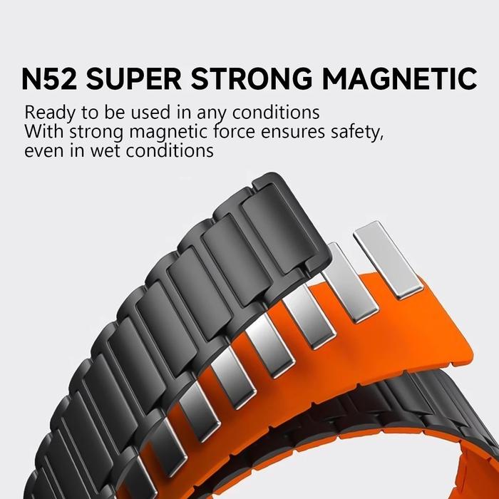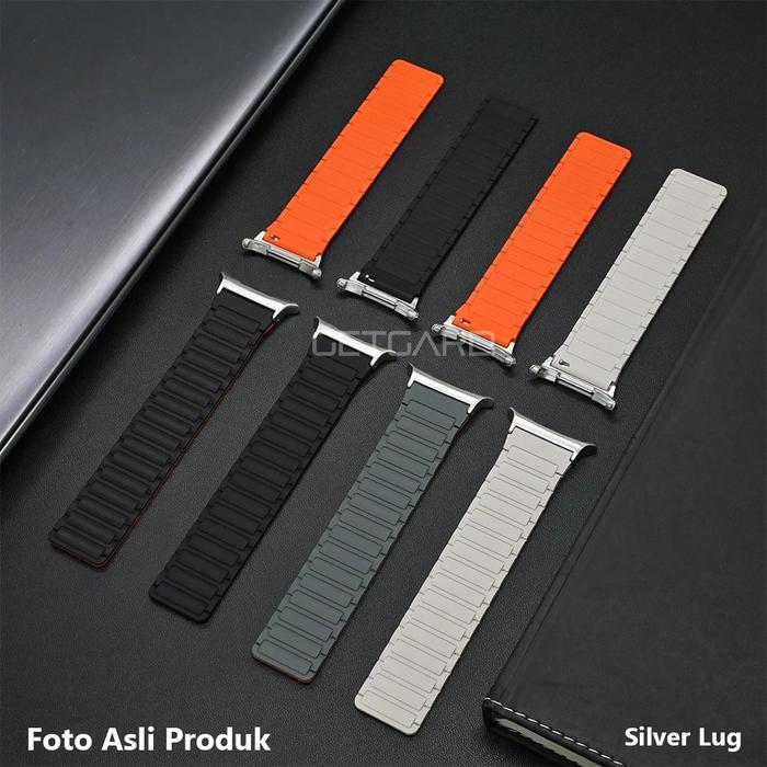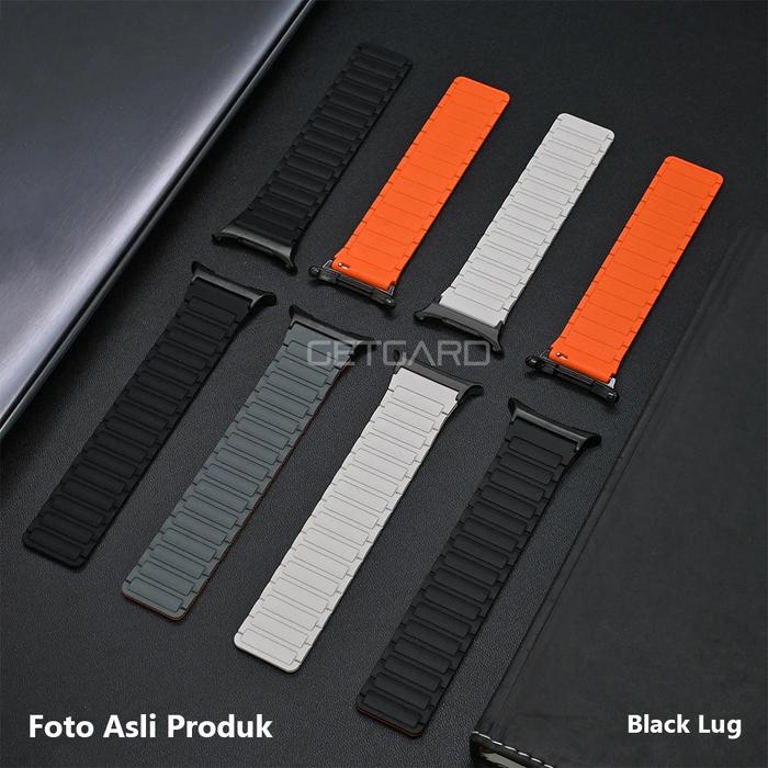 Samsung Galaxy Watch Ultra Magnetic Strap Silicone Band Tali Jam Getgard Silikon - Black Orange, lver Lug