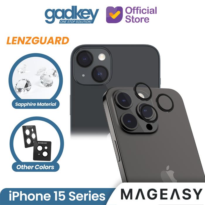 Anti Gores Kamera Iphone 15 Pro Max / 15 Pro / 15 Plus / 15 Mageasy Lenzguard Camera Lens Tempered Glass Protector - Bla
