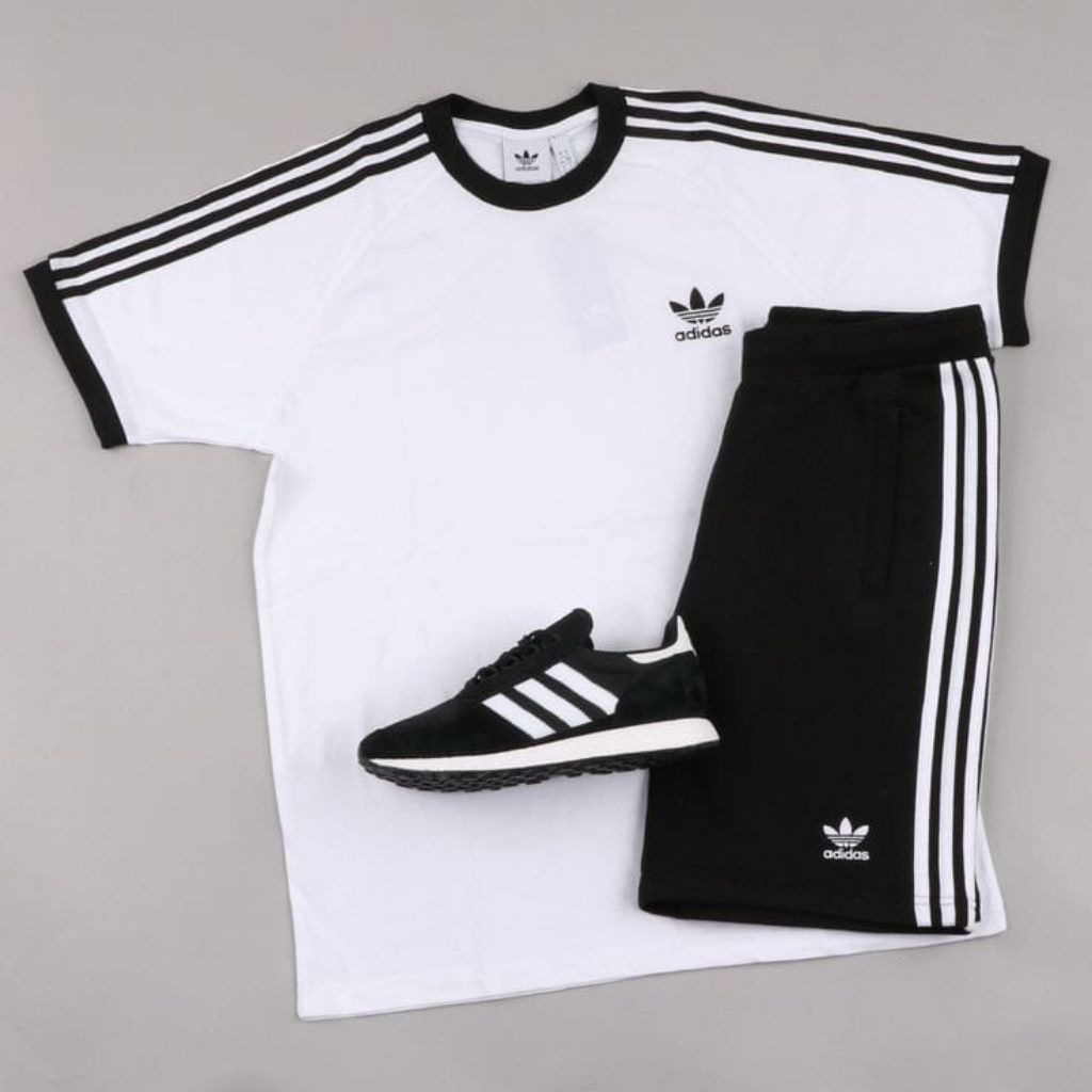 Ts Adidas Anak Stelan Putih Hitam