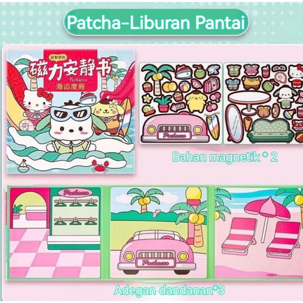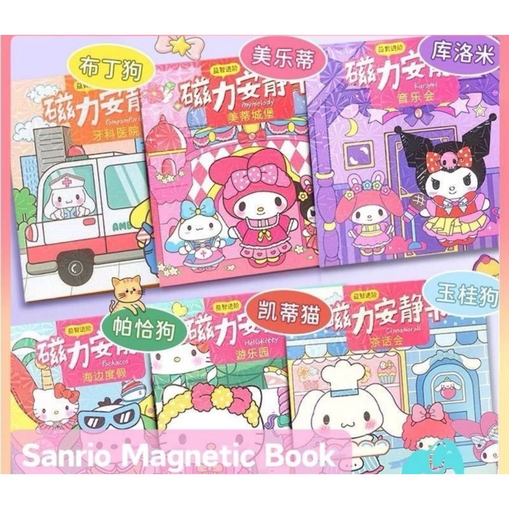 Diy Buku Magnet Quite Book Sanrio Kuromi Melody Pochacco Cinnamoroll Hellokitty Pom Pom Purin Busy Book Sticker Book