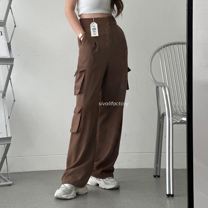 Sivali Bonnie Cargo Pants - Highwaist Loose Cargo - Celana Kargo Wanita - Baggy Pants Panjang Polyester Kulot Casual Hit