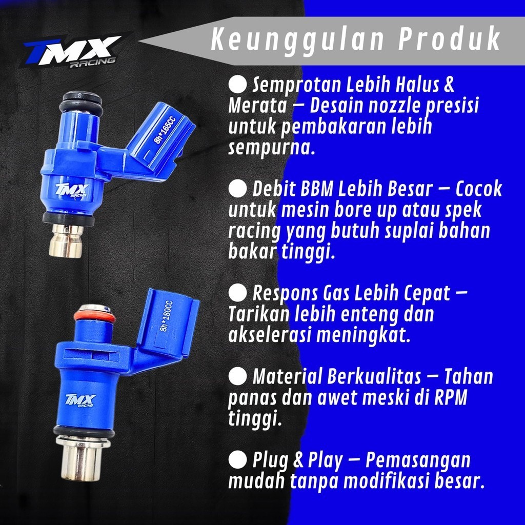 TMX INJEKTOR H SERIES BEAT VARIO GENIO SCOOPY SONIC CRF150 STYLO VERZA MEGAPRO PCX ADV CB CBR REVO 110 125 150 160 - 6 8 10 - 130 145 150 165 180 200 CC - INJECTOR ORIGINAL TMX | ORCA RNG