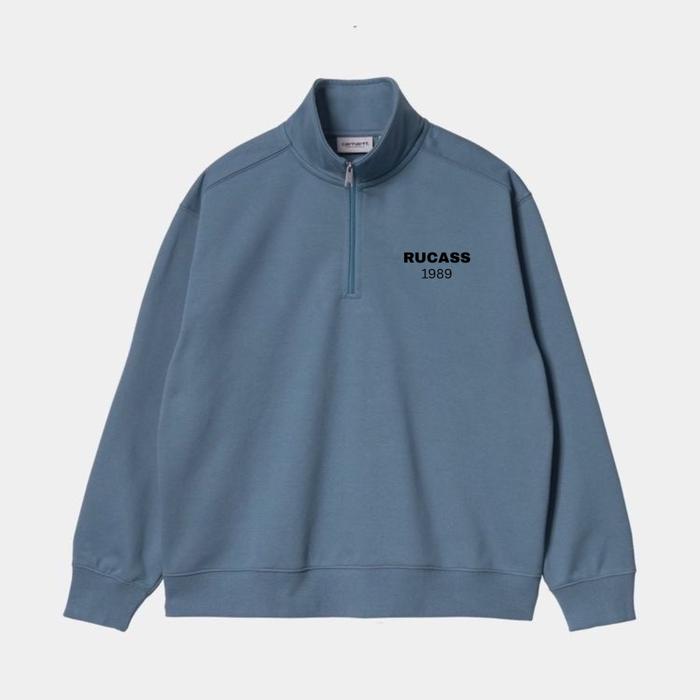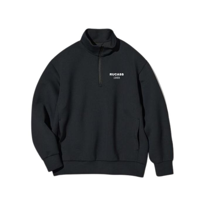 Half Zip List Rucass Premium Pria Wanita / Outerwear Fleece Unisex / Sweater High Neck - Hitam Hitam, M