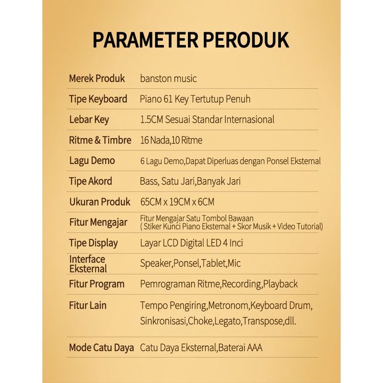 Benston Music- Organ Elektronik Multifungsi Anak Laki-Laki Dan Perempuan Pemula 61 Kunci Piano Rumah Bayi 3-6-12 Tahun M