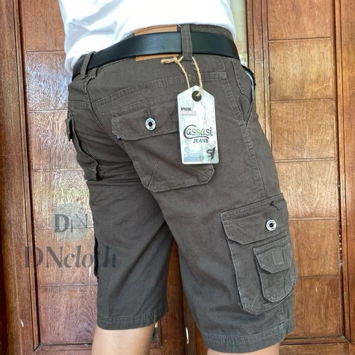 Cassasi Celana Pendek Cargo Pria Katun Kanvas Premium Tebal Shorts Dengan Saku Timbul - Hitam, 27