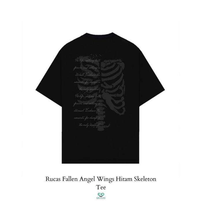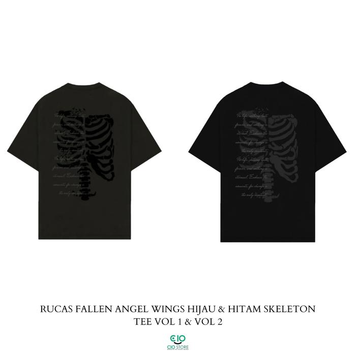 Rucas T-Shirt Fallen Angel Wings Skeleton Dark Green & Black Delivery I & Delivery Ii Tee Original Invoice - Hijau Vol 1