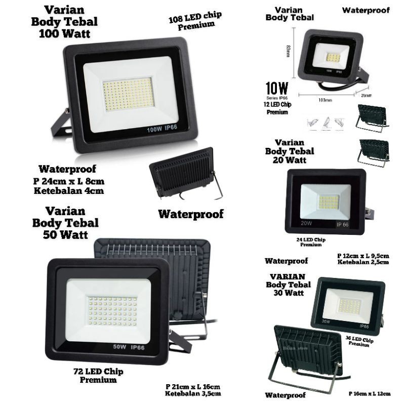 Lampu Sorot LED ANTI AIR 10 20 30 50 100 200 W Watt Putih Dan Kuning kotak tembak 220volt- OUTDOOR