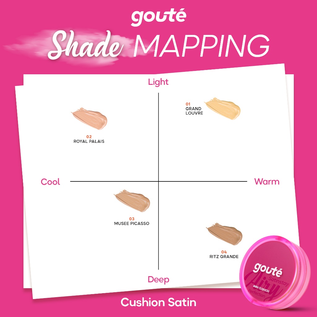 Goute Cushion Satin Stay Airy Perfection - Ringan, Menyamarkan Pori, Minim Oksidasi, Tahan Lama Long Lasting