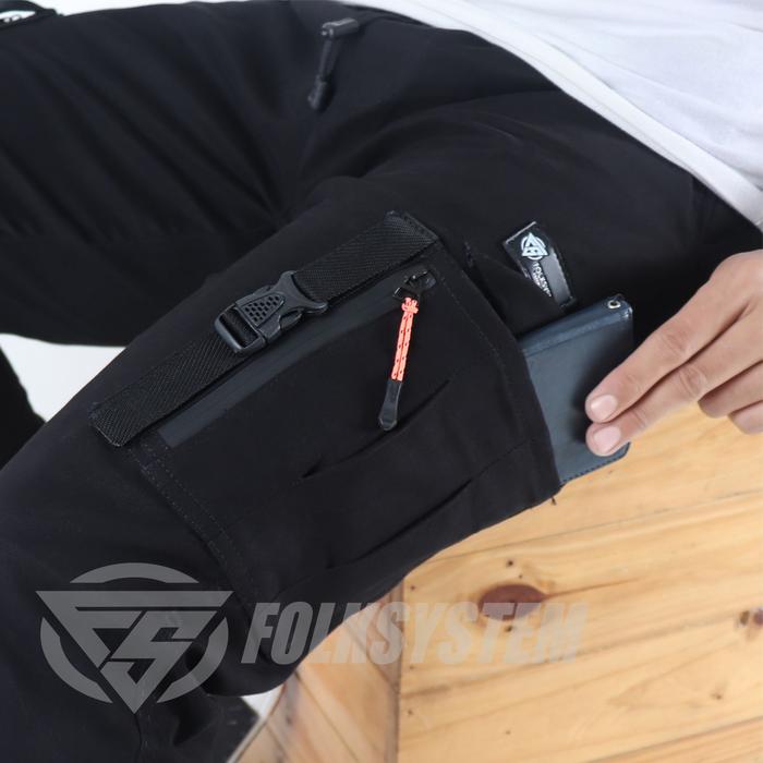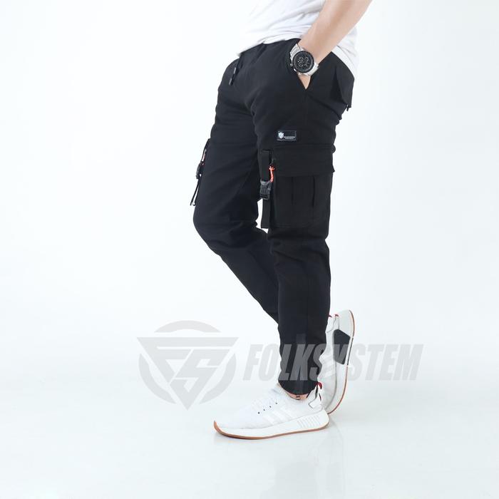 Celana Cargo Jogger Pants Panjang Pria Ziper Folksystem - Hitam, S