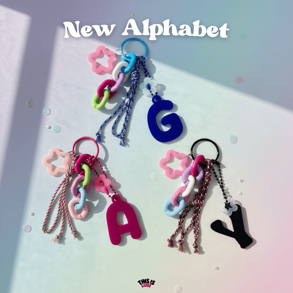 Thisislubi - Gantungan Huruf NEW Alphabet 2.0 Bag Charm Keychain Abjad Akrilik Bag Charm Keychain Macrame