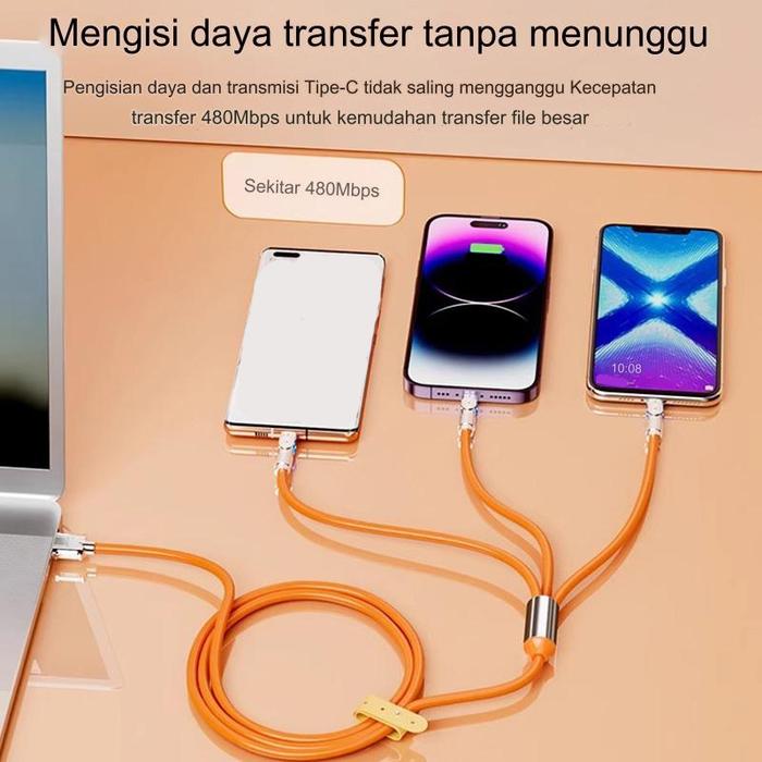 Zhike Kabel Data Fast Charging 3 In 1 Kabel Casan Tipe C Micro Usb Ios Cable Type C Dengan Adapter 240W Panjang 1.2M Hp