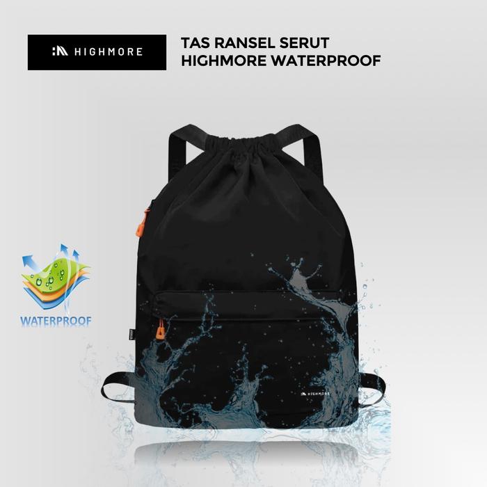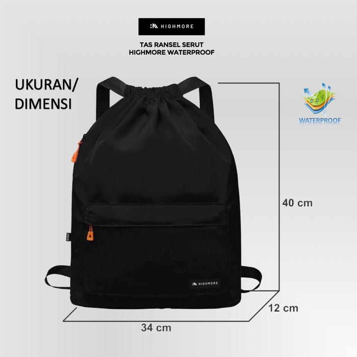 Tas Ransel Pria Basic Stringbag Tas Serut Highmore Unisex Waterproof - Tas Webing Hitam, Polos Backpack