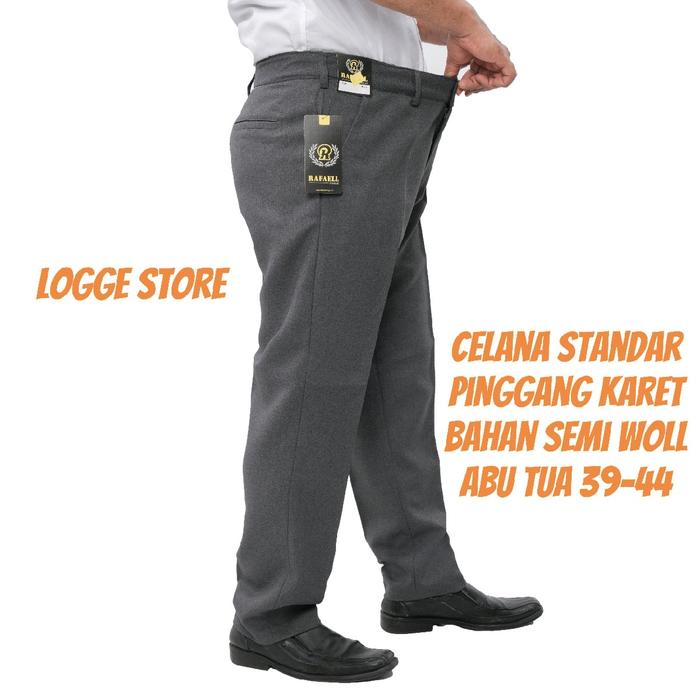 Logge Store Celana Standar Pria Voxy Panjang Pinggang Karet Bahan Semi Woll Kain Melar Jumbo 39-44 Hitam & Abu Tua Kanto
