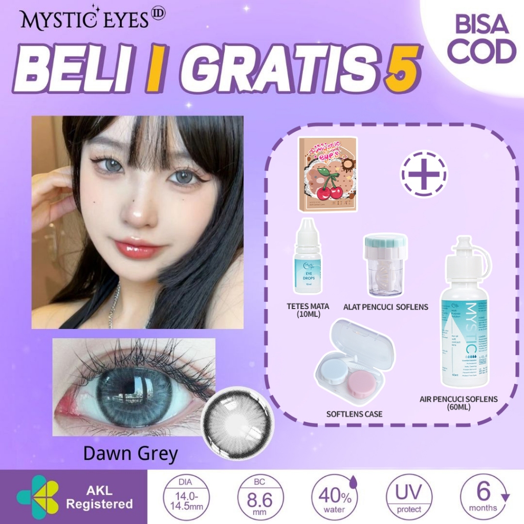 []Mysticeyes 5 Item Paket kombinasi (1 Softlens Normal 14.20MM-14.50MM + Air Pencuci Softlens 60ml + Alat Cuci S