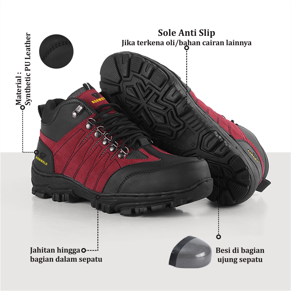 Sepatu Boots Safety Pria Hiking Ujung Besi Safety Proyek Lapangan