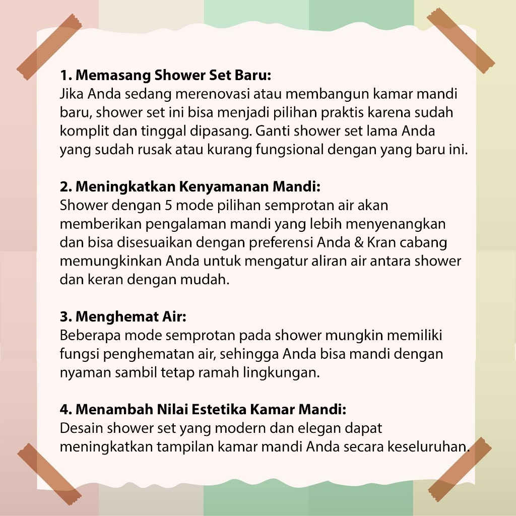 ESCA 39 Shower Mandi Hitam 5 Mode Komplit Kran