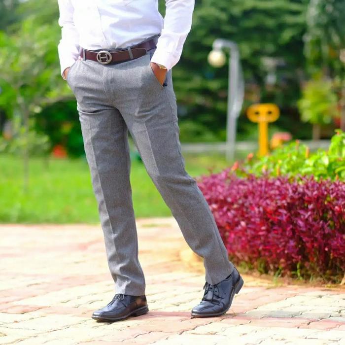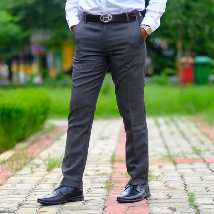 Celana Katun Slim Fit Pria / Celana Formal / Celana Kerja Kantor / Cel - Abu Muda, 28