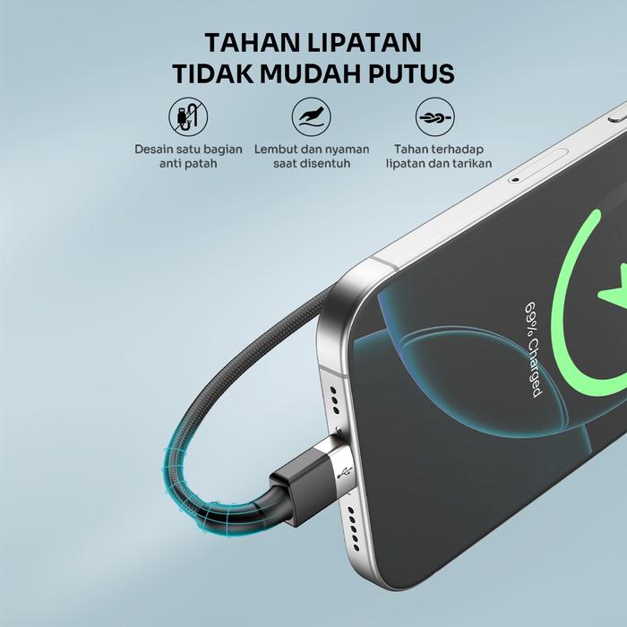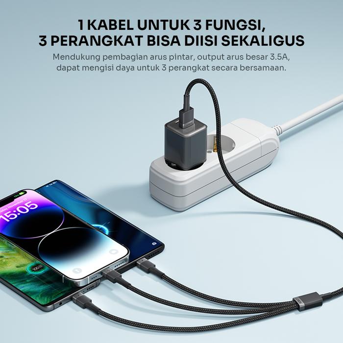 Robot Data Cable Fast Charging 3In1 Type-C, Lightning, & Micro 120Cm 3.5A - Kabel Data Robot Rsy120 Original - Bergar