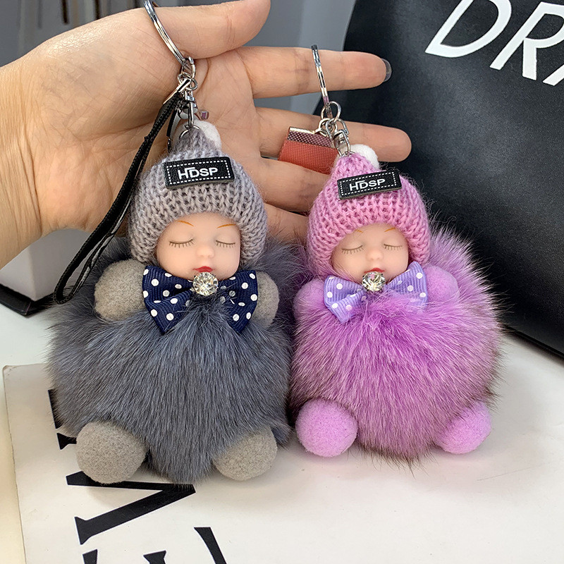 Gantungan Kunci Boneka Baby Tidur Lucu / Boneka Mewah Keychain Sleepy Baby/ Kunci Keychain Baby Doll Cute Bulu Lembut