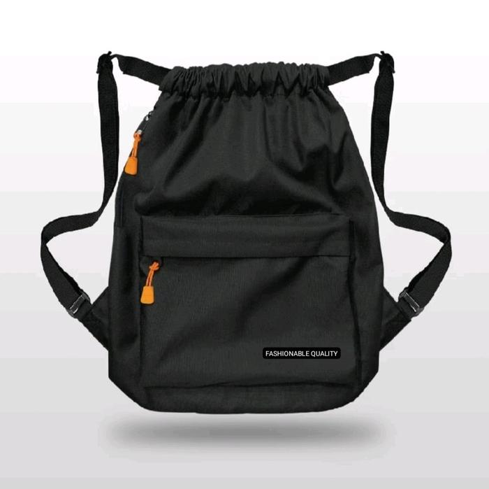 Tas Ransel Serut Pria/Wanita Backpack Sekolah - Hitam