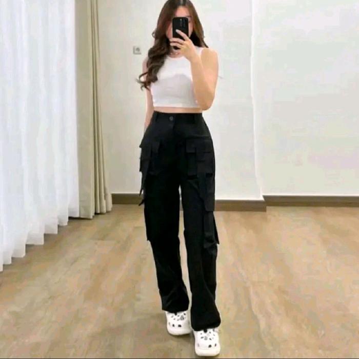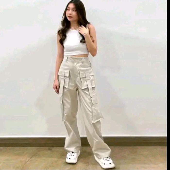 Tarayussi - Yura Cargo Pants Highwaist Cargo - Kulot Cargo Losse Casual Outfit Cargo - Baggy Pants - Celana Panjang Katu