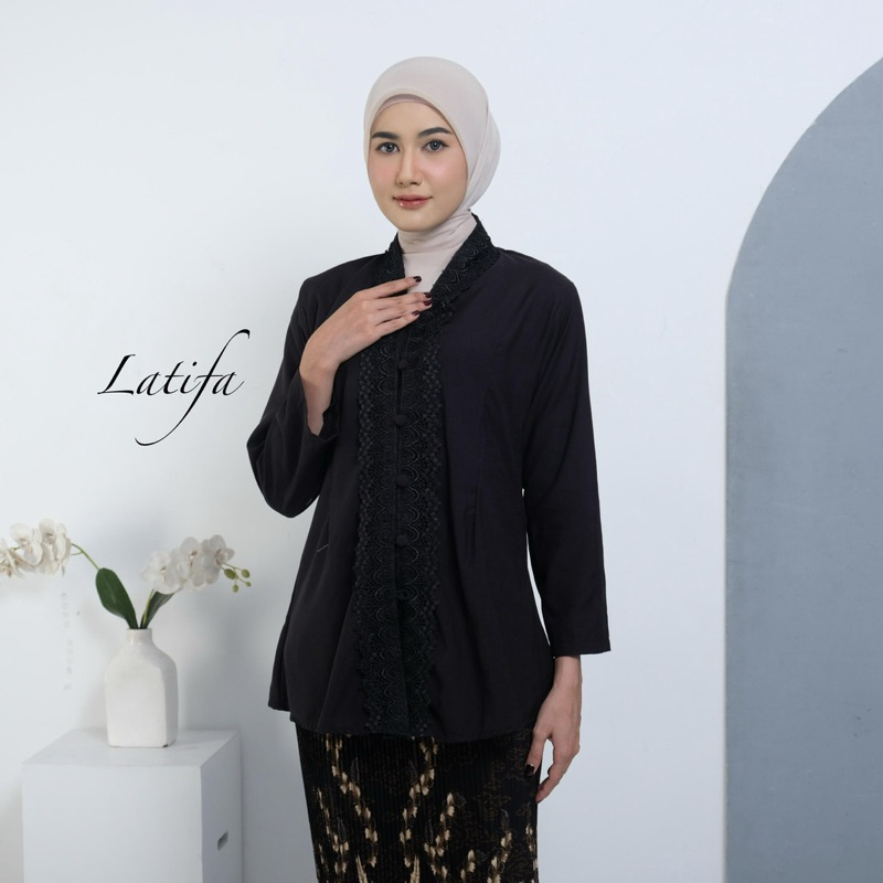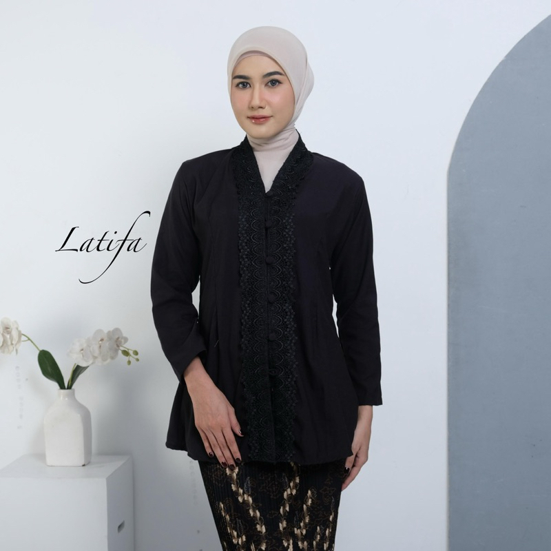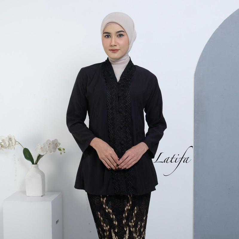 Kebaya Encim Modern Renda Motif Bunga Bahan Katun Mikro Lengan Panjang