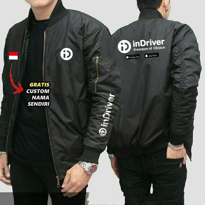 JAKET BOMBER INDRIVER TERBARU TERKEREN DAN TERMURAH - HITAM, M