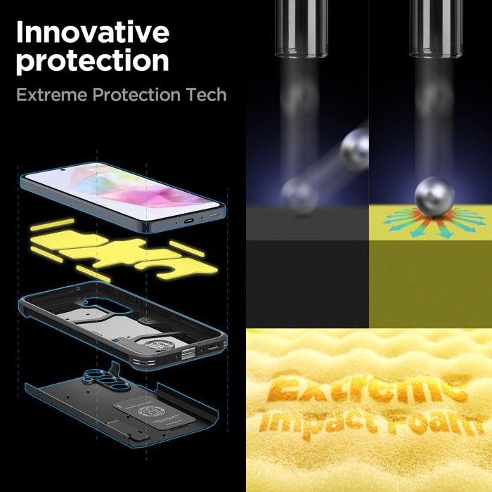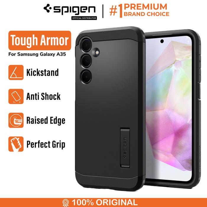 Case For Samsung Galaxy A35 Spigen Tough Armor Anti Shock Kickstand Casing - Black, A35