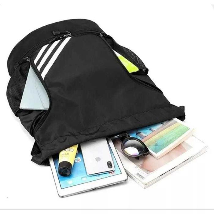 Travel Bag Tas Ransel Serut Multifungsi | Olahraga, Gym, Futsal, Sepatu & Harian Unisex - Hitam Serut