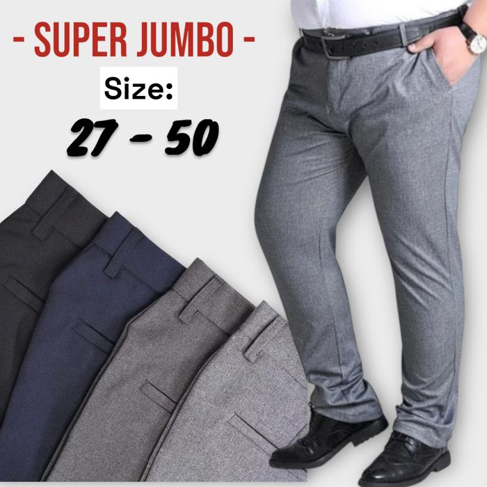 Celana Formal Jumbo Pria Kerja Kantor Panjang Bahan Slimfit Big Size 39 - 50 - Hitam, 27