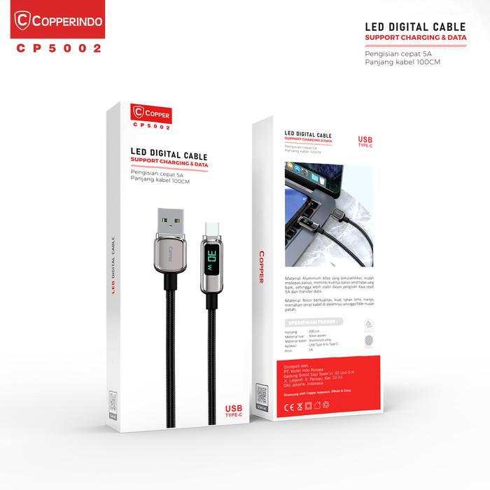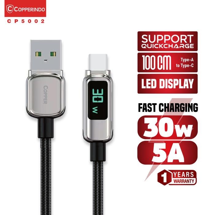 Copper Kabel Data 30W/5A Led Cp5002 | Fast Charging Type-A To Type-C